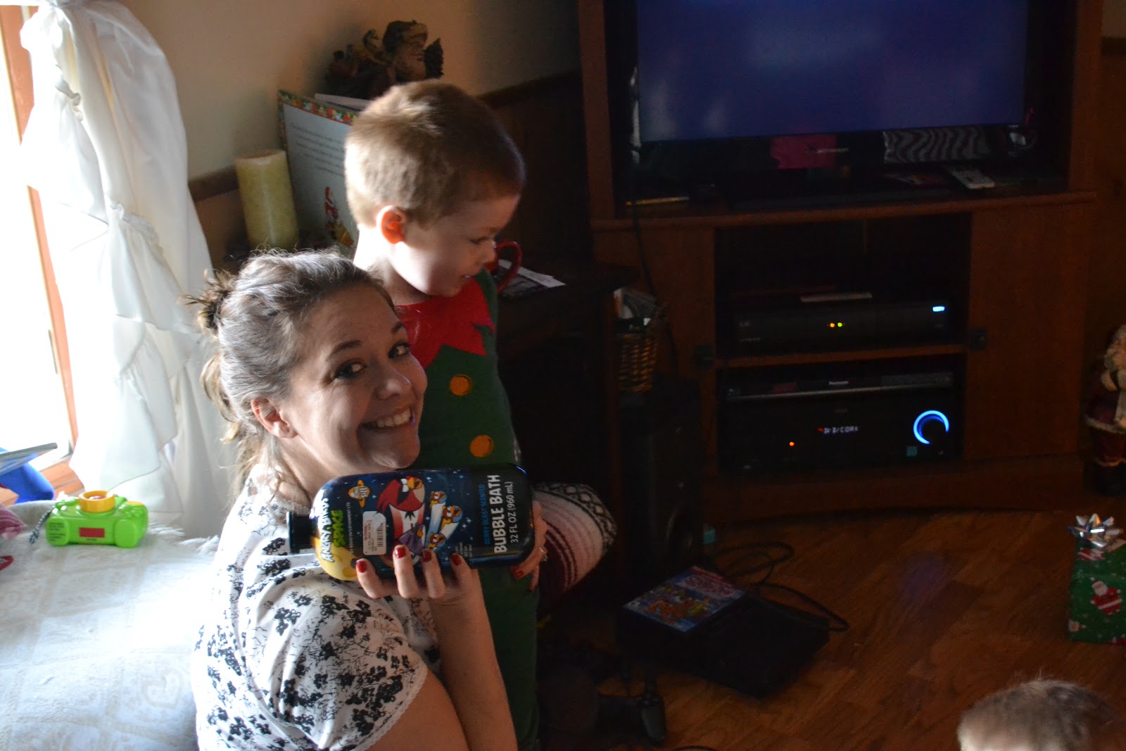 My most favorite moments were Monday night, Jamie and I had a huge campout in Charlie's floor with the boys. Santa worked on the ball tent and Scooby Castle while I listened to cheesy Christmas music and baked. The next morning two very sleepy boys had two very special smiles. We sat on the floor and exchanged perfect gifts. The boys gave me pink shampoo, fuzzy socks, and Angry Birds bubble bath. Jamie and I are getting a couch, so we were able to enjoy the small gifts that the boys wanted to give.