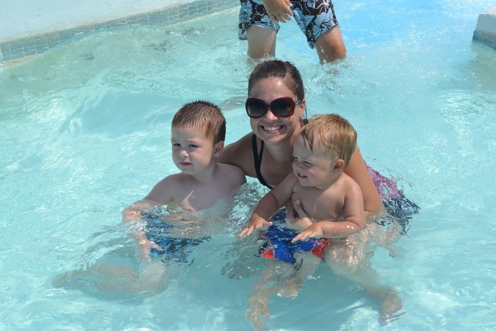 While we were there we visited a waterpark, and I am so glad we did. Charlie is at the age where is really liked it. Brady enjoyed the splashes with Finley and Charlie went down the slide over and over. It was fun. Also, Jamie almost died when he came within feet of hitting the side of the pool. Enjoy the video soon.